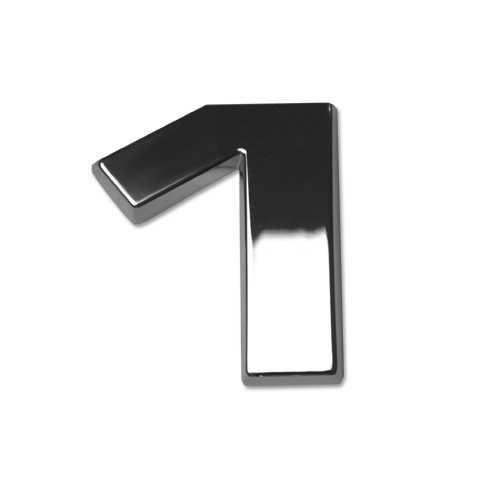 Ziffer 1 Kunststoff, galvanisch verchromt, ca. 26x31x3mm Breite x Höhe x Stärke (+0,8mm Klebefilm) Material: ABS