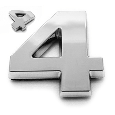 Ziffer 4, Kunststoff, galvanisch verchromt, ca. 27x25x3mm Breite x Höhe x Stärke (+0,8mm Klebefilm) Material: ABS