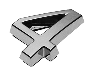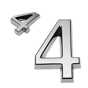 Ziffer 4, Kunststoff, galvanisch verchromt, ca. mm Breite x Höhe x Stärke (+0,8mm Klebefilm) Material: ABS