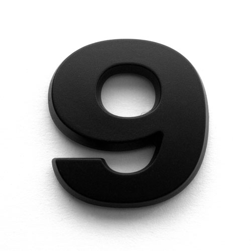 Ziffer 9 mattschwarz, ca. 24x26x3mm (+0,8mm Klebefilm) Material: ABS Kunststoff, mattschwarz lackiert