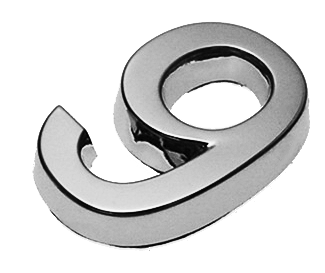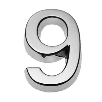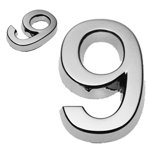 Ziffer 9, Kunststoff, galvanisch verchromt, ca. mm Breite x Höhe x Stärke (+0,8mm Klebefilm) Material: ABS
