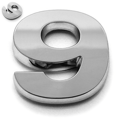 Ziffer 9, Kunststoff, galvanisch verchromt, ca. 27x25x3mm Breite x Höhe x Stärke (+0,8mm Klebefilm) Material: ABS