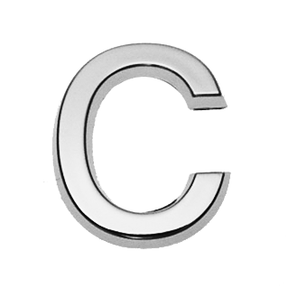 Buchstabe C, Kunststoff, galvanisch verchromt, ca. 25 x 30 x 4 mm Breite x Höhe x Stärke (+0,8mm Klebefilm) Material: ABS