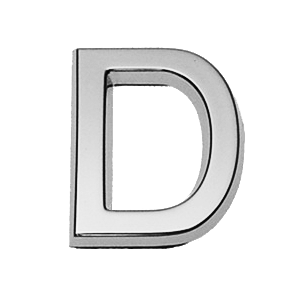 Buchstabe D, Kunststoff, galvanisch verchromt, ca. 25 x 30 x 4 mm Breite x Höhe x Stärke (+0,8mm Klebefilm) Material: ABS