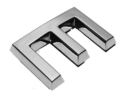 Buchstabe E, Kunststoff, galvanisch verchromt, ca. 23 x 30 x 4 mm Breite x Höhe x Stärke (+0,8mm Klebefilm) Material: ABS