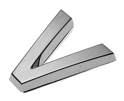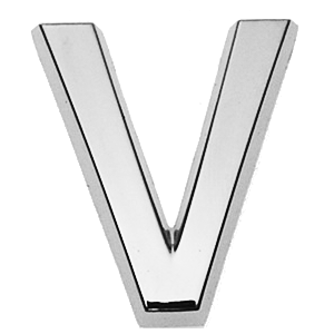 Buchstabe V, Kunststoff, galvanisch verchromt, ca. mm Breite x Höhe x Stärke (+0,8mm Klebefilm) Material: ABS