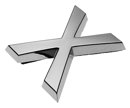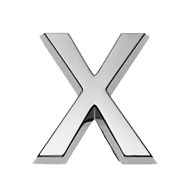 Buchstabe X, Kunststoff, galvanisch verchromt, ca. mm Breite x Höhe x Stärke (+0,8mm Klebefilm) Material: ABS